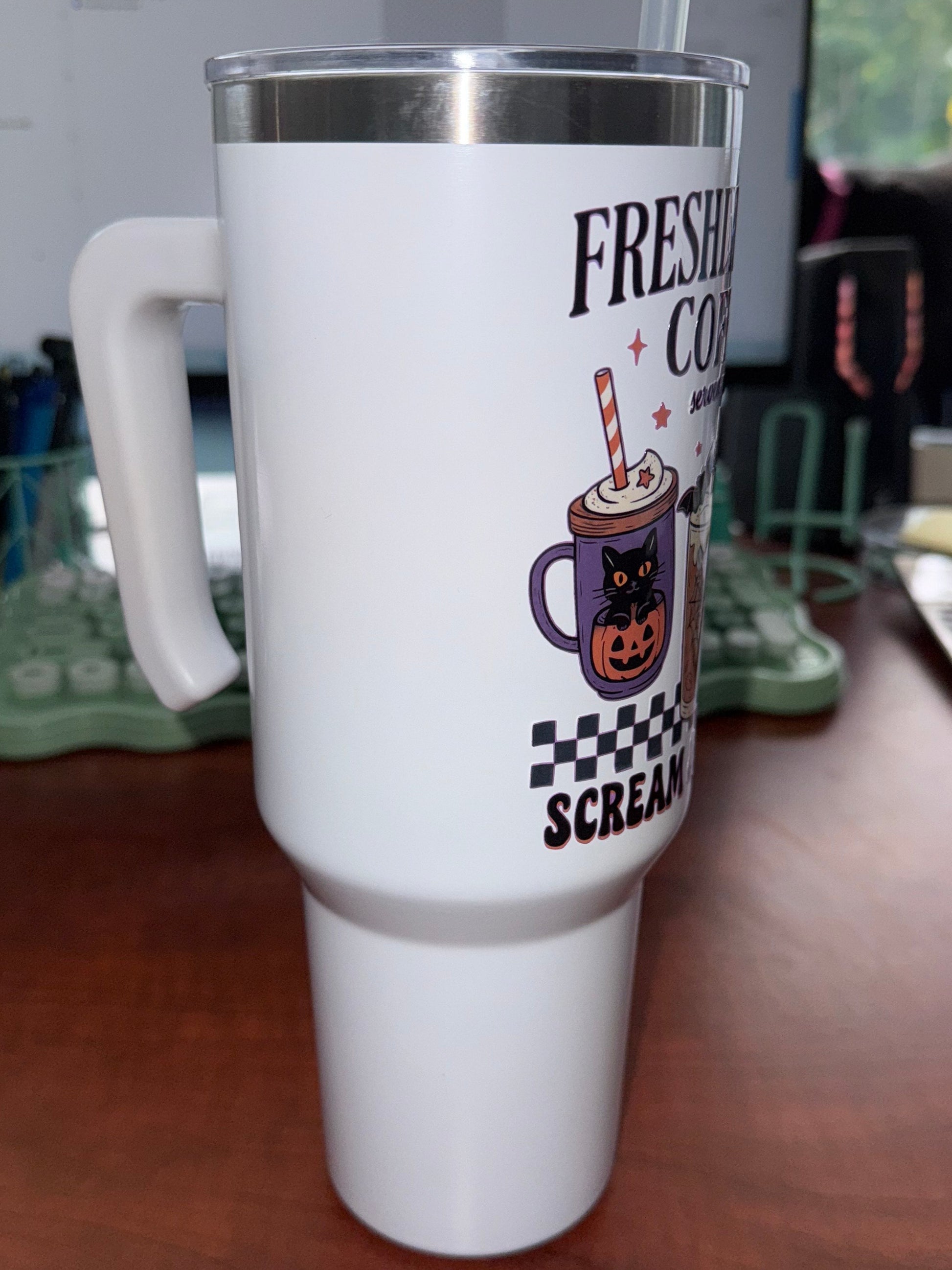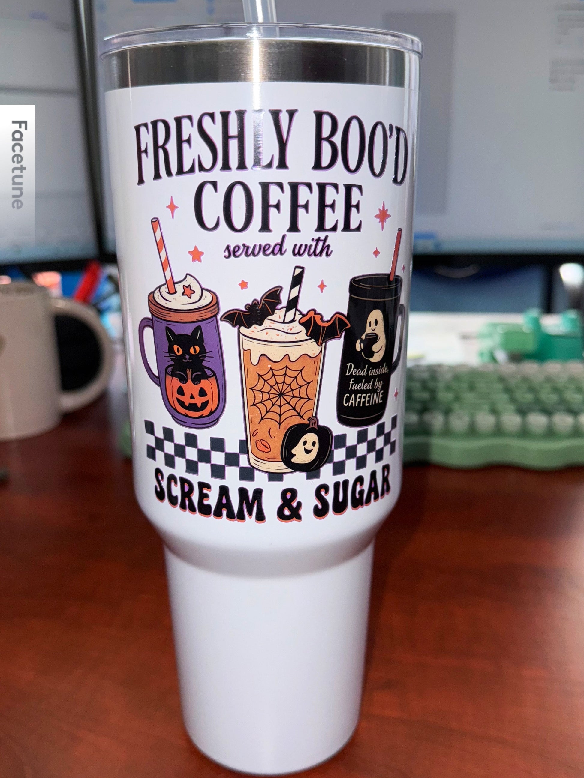 Start your spooky mornings right with this adorable tumbler featuring Halloween Drinks, ghostly details, and a whole latte attitude.